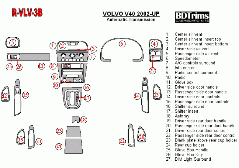 Volvo V40 2002-UP Dash Trim Kit (RHD)