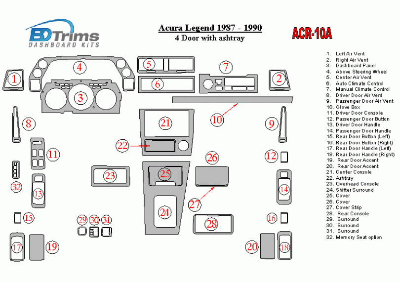 Acura Legend 1987 - 1990 Dash Trim Kit