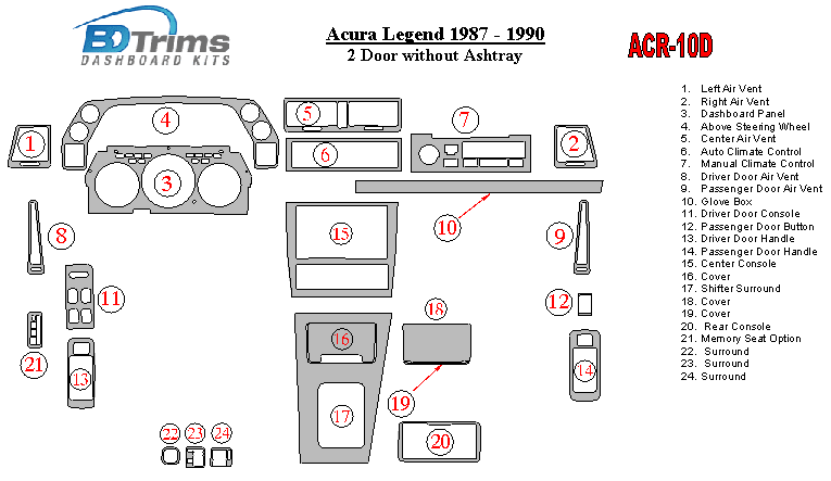 Acura Legend 1987 - 1990 Dash Trim Kit