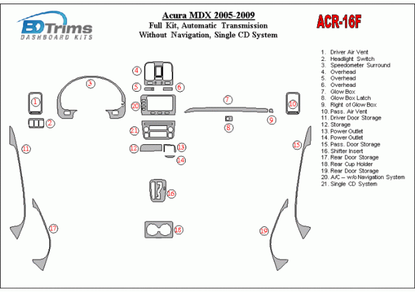 Acura MDX 2005 - 2006 Dash Trim Kit