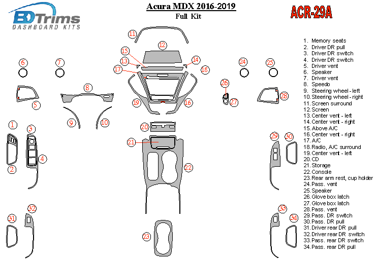 Acura MDX 2016 - 2019 Dash Trim Kit
