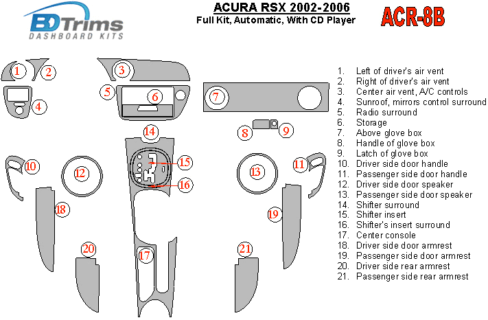 Acura RSX 2002 - 2006 Dash Trim Kit