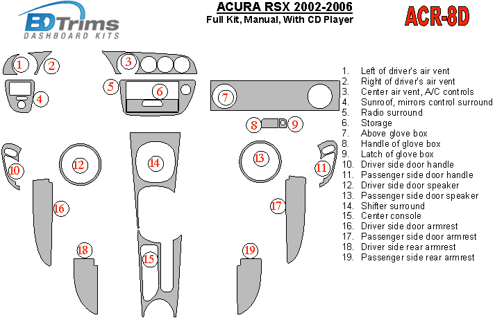 Acura RSX 2002 - 2006 Dash Trim Kit