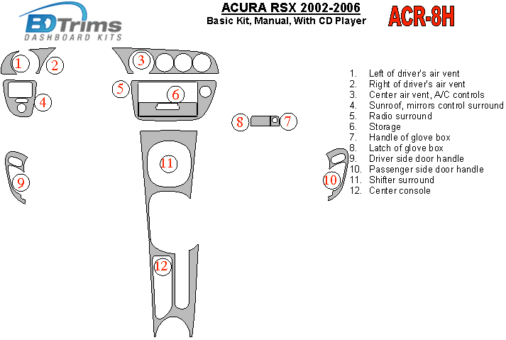 Acura RSX 2002 - 2006 Dash Trim Kit