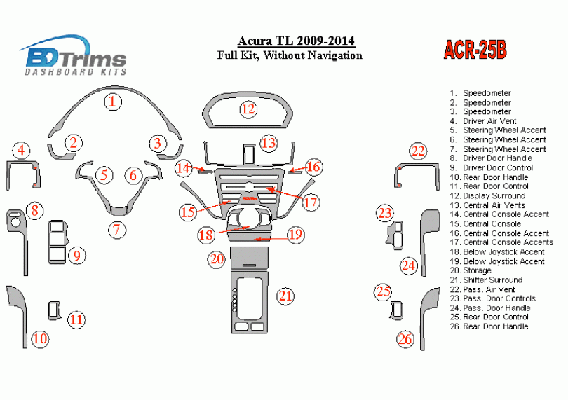 Acura TL 2009-UP Exterior Door Window Pillar Post Cover Trim
