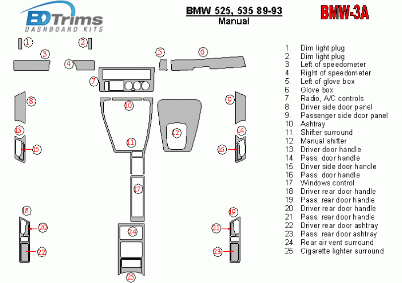 BMW 5 Series 1989 - 1993 Dash Trim Kit