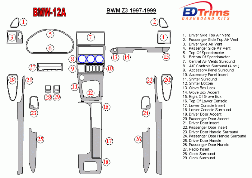 BMW Z3 1997 - 1999 Dash Trim Kit