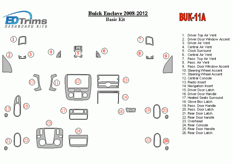 Buick Enclave 2008 - 2012 Dash Trim Kit