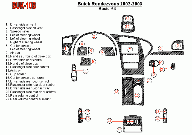 Buick Rondezvoues 2001 - 2003 Dash Trim Kit
