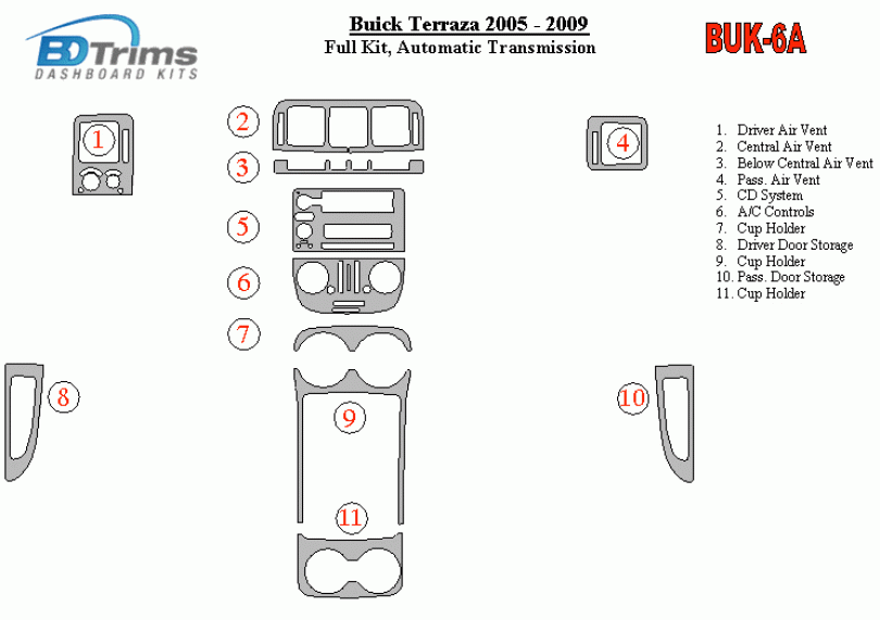 Buick Terraza 2005 - 2009 Dash Trim Kit