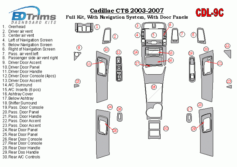 Cadillac CTS 2003 - 2007 Dash Trim Kit