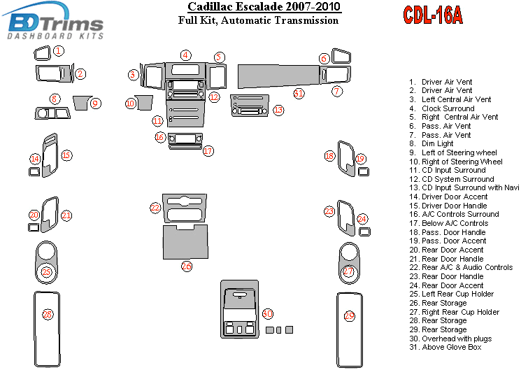 Cadillac Escalade 2007 - 2010 Dash Trim Kit