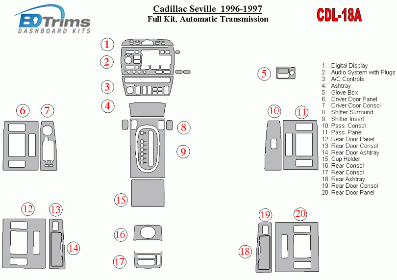 Cadillac Seville 1996 - 1997 Dash Trim Kit
