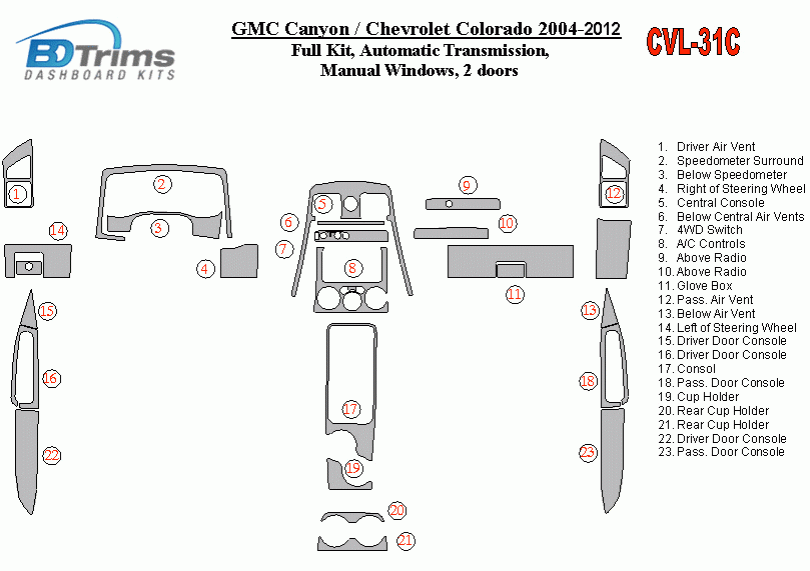Chevrolet Colorado 2004 - 2012 Dash Trim Kit