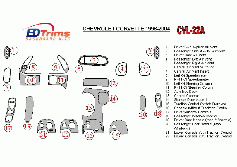 Chevrolet Corvette 1998 - 2004 Dash Trim Kit