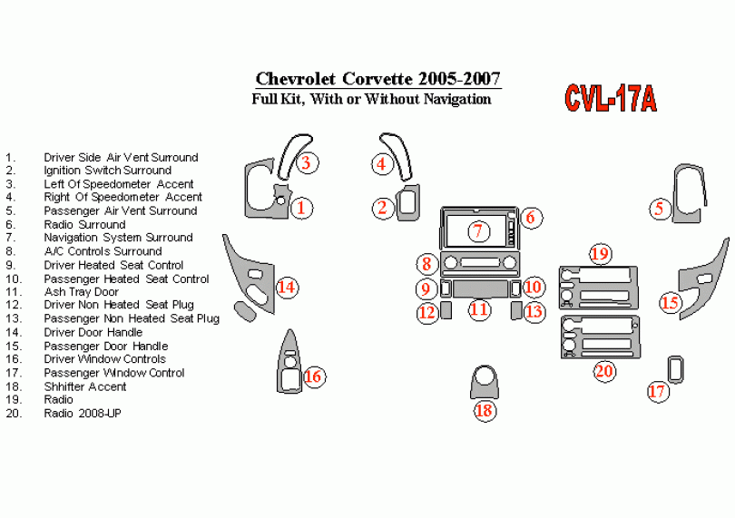 Chevrolet Corvette 2005 - 2007 Dash Trim Kit