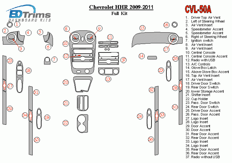 Chevrolet HHR 2009 - 2011 Dash Trim Kit
