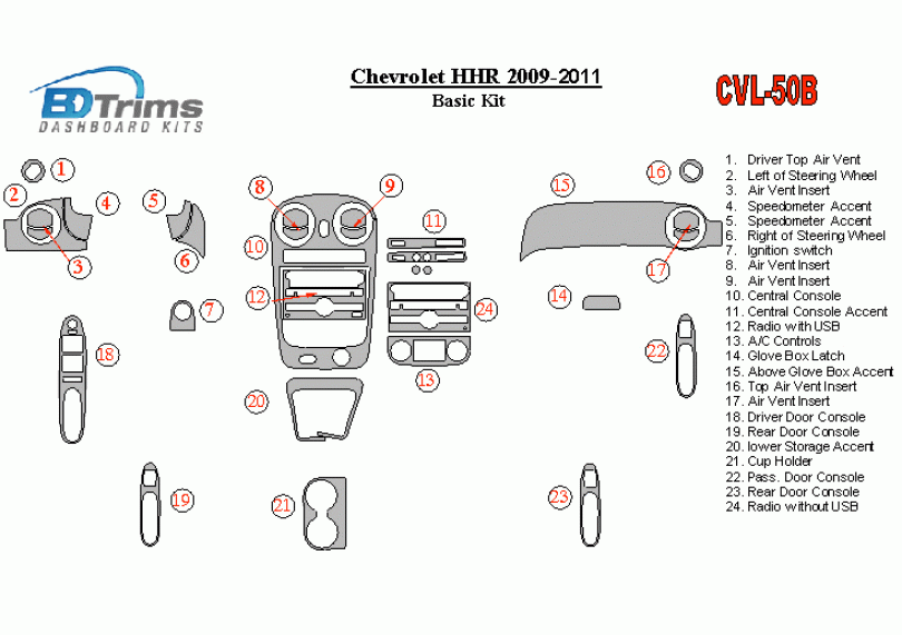 Chevrolet HHR 2009 - 2011 Dash Trim Kit