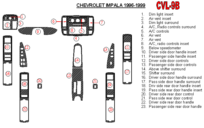 Chevrolet Impala SS 1996 - 1999 Dash Trim Kit