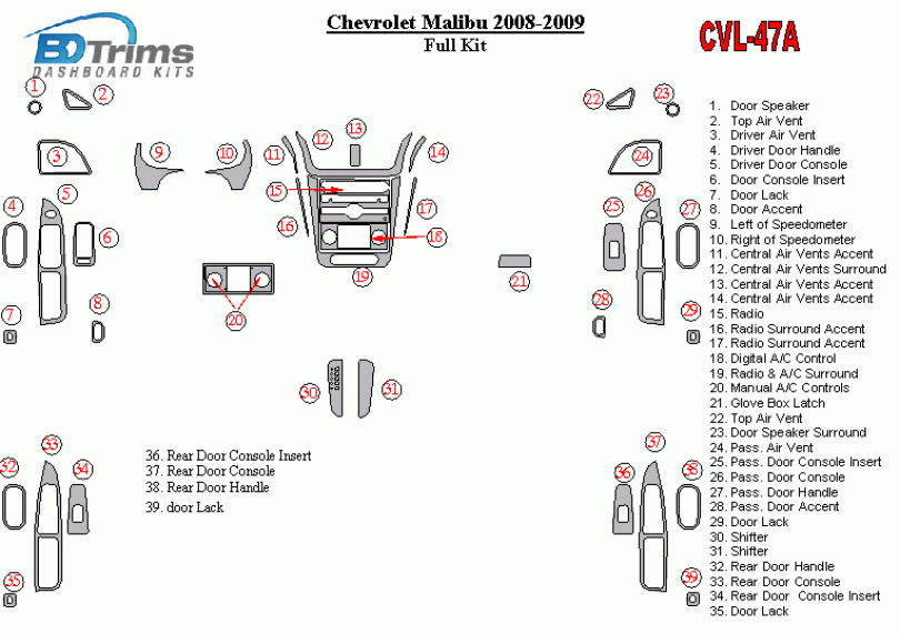 Chevrolet Malibu 2008 - 2009 Dash Trim Kit