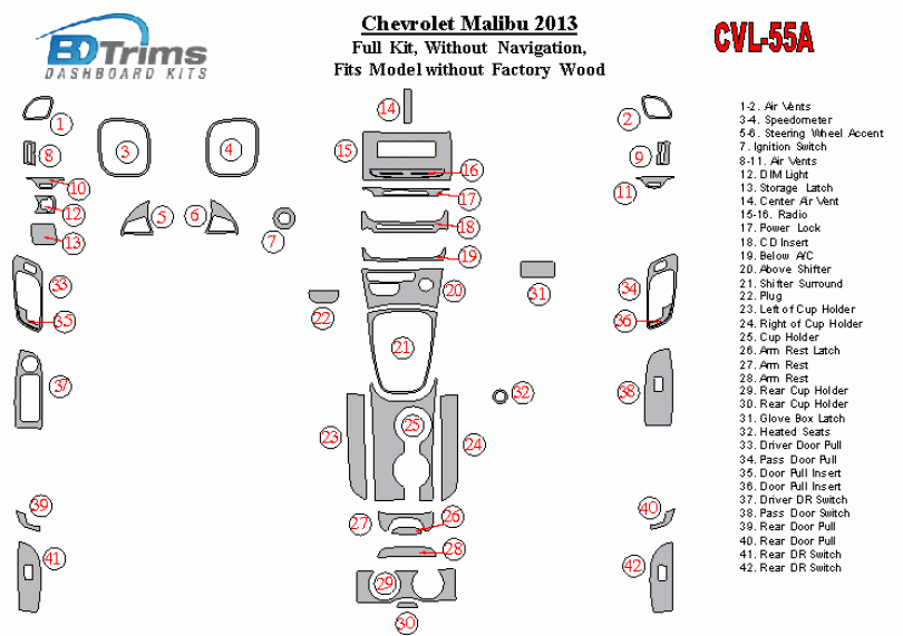 Chevrolet Malibu 2013 - 2013 Dash Trim Kit