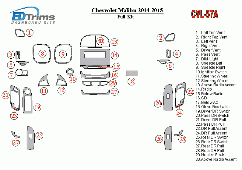 Chevrolet Malibu 2014 - 2015 Dash Trim Kit