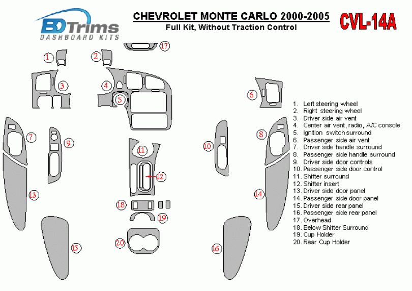 Chevrolet Monte Carlo 2000 - 2005 Dash Trim Kit