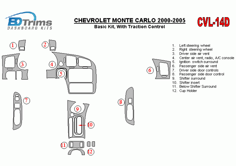 Chevrolet Monte Carlo 2000 - 2005 Dash Trim Kit
