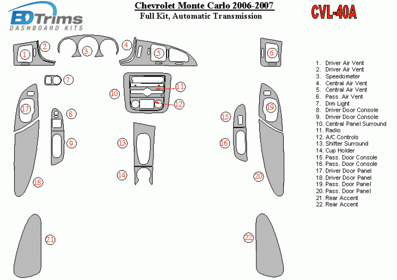 Chevrolet Monte Carlo 2006 - 2007 Dash Trim Kit