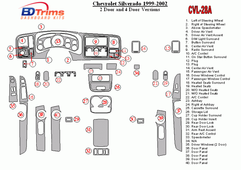 Chevrolet Silverado 1999 - 2002 Dash Trim Kit