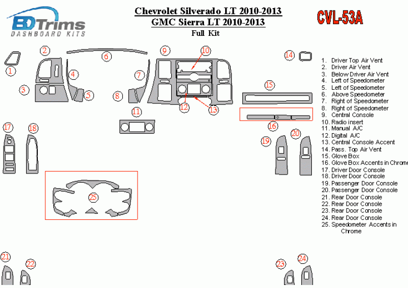 Chevrolet Silverado 2010 - 2013 Dash Trim Kit