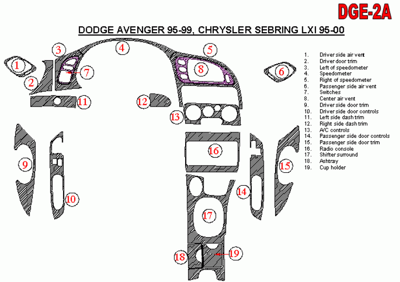 Dodge Avenger 1995 - 1999 Dash Trim Kit