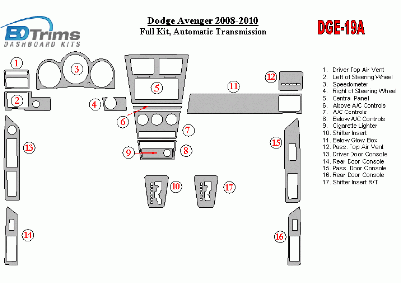 Dodge Avenger 2008 - 2010 Dash Trim Kit