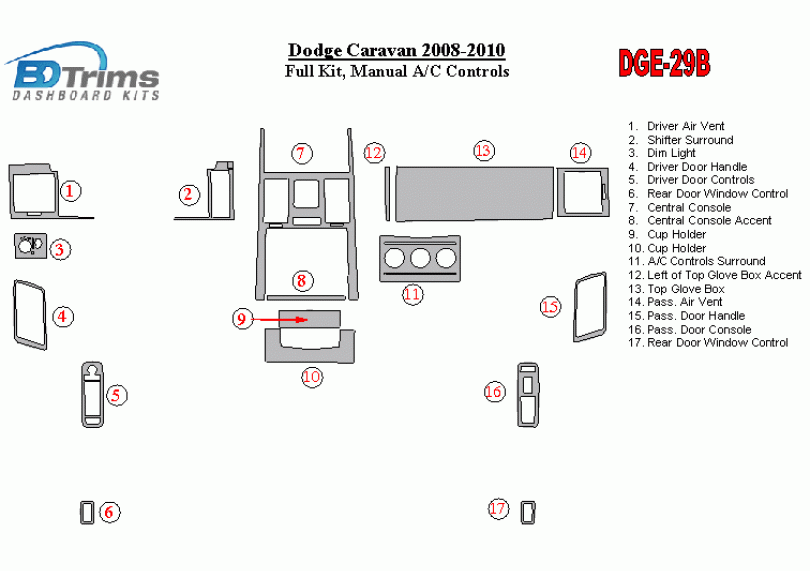 Dodge Caravan 2008 - 2010 Dash Trim Kit
