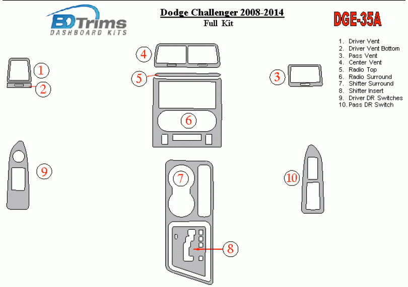Dodge Challenger 2008 - 2014 Dash Trim Kit