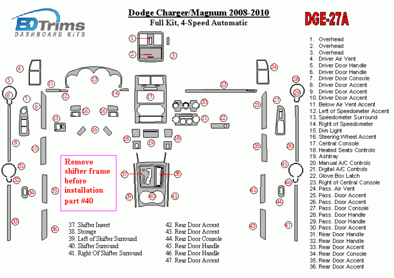 Dodge Charger 2008 - 2010 Dash Trim Kit