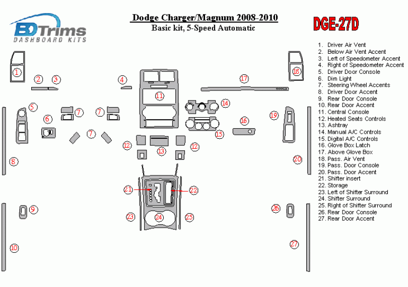 Dodge Charger 2008 - 2010 Dash Trim Kit