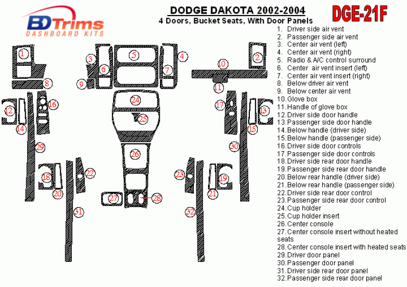 Dodge Dakota 2002 - 2004 Dash Trim Kit