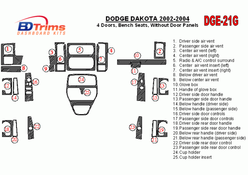 Dodge Dakota 2002 - 2004 Dash Trim Kit