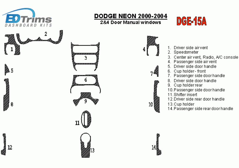 Dodge Neon 2000 - 2004 Dash Trim Kit