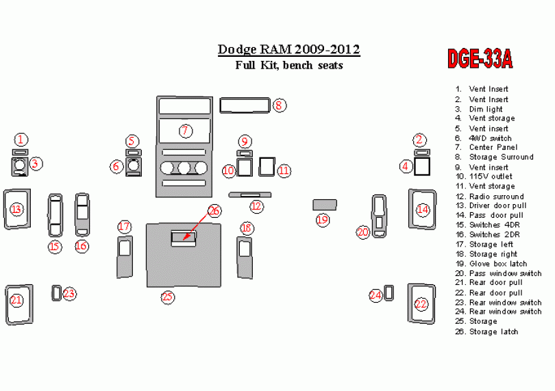 Dodge RAM 2009 - 2012 Dash Trim Kit