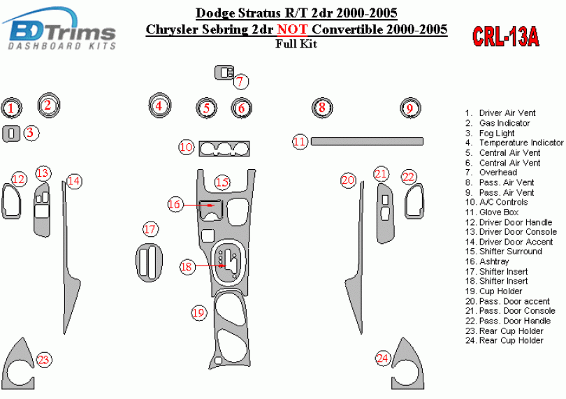 Dodge Stratus R/T 2000 - 2005 Dash Trim Kit