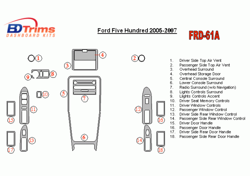Ford 500 2005 - 2007 Dash Trim Kit