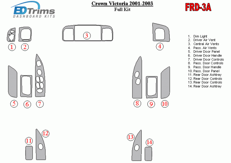 Ford Crown Victoria 2001 - 2003 Dash Trim Kit