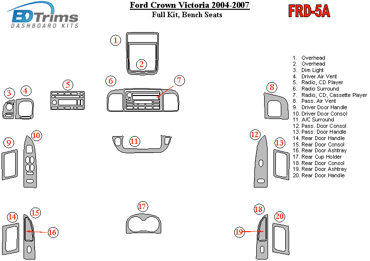 Ford Crown Victoria 2004 - 2007 Dash Trim Kit
