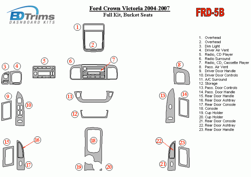 Ford Crown Victoria 2004 - 2007 Dash Trim Kit