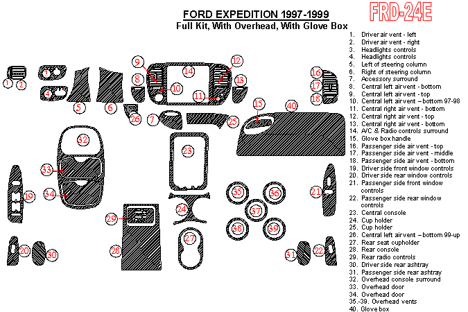 Full Kit, With Overhead, Console, With Glove Box, 40 Pcs.Materials