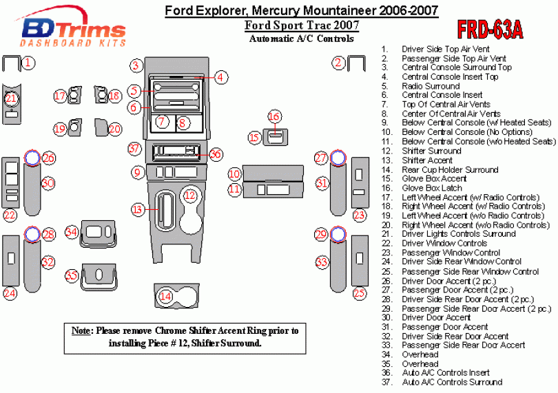 Ford Explorer 2006 - 2007 Dash Trim Kit