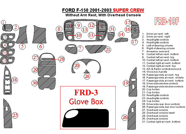 Ford F-150 Super Crew 2001 - 2003 Dash Trim Kit