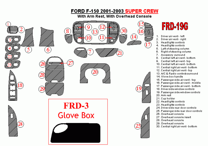 Ford F-150 Super Crew 2001 - 2003 Dash Trim Kit